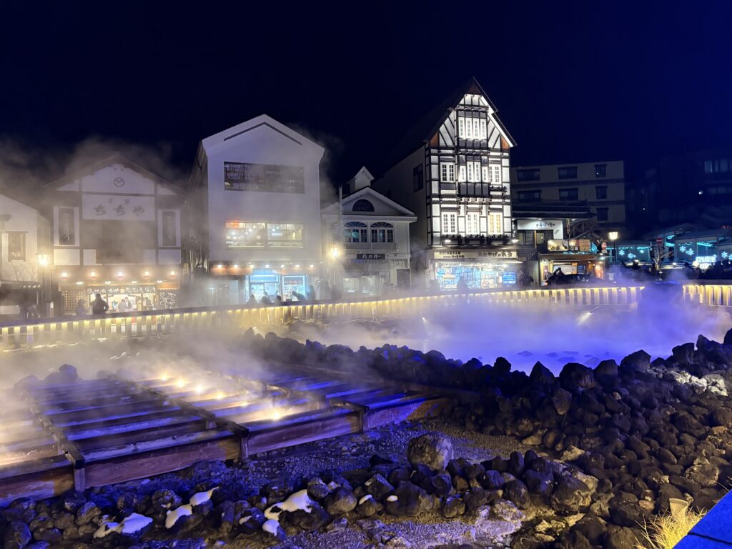 湯けむりがライトに照らされてゆらゆら揺れる様子は、ずっと見ていられる美しさでした。