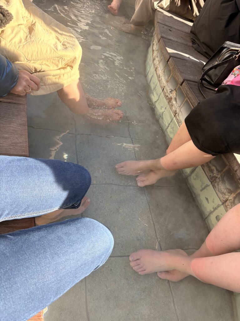 最後にもう一度湯畑に戻り、足湯に浸かりながらぼーっとしました。